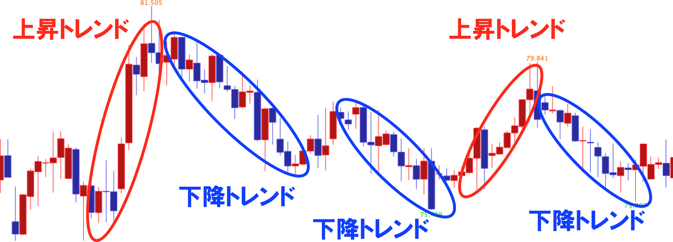 数ヶ月も続くトレンド相場はないものの、数週間、数日間、数時間と